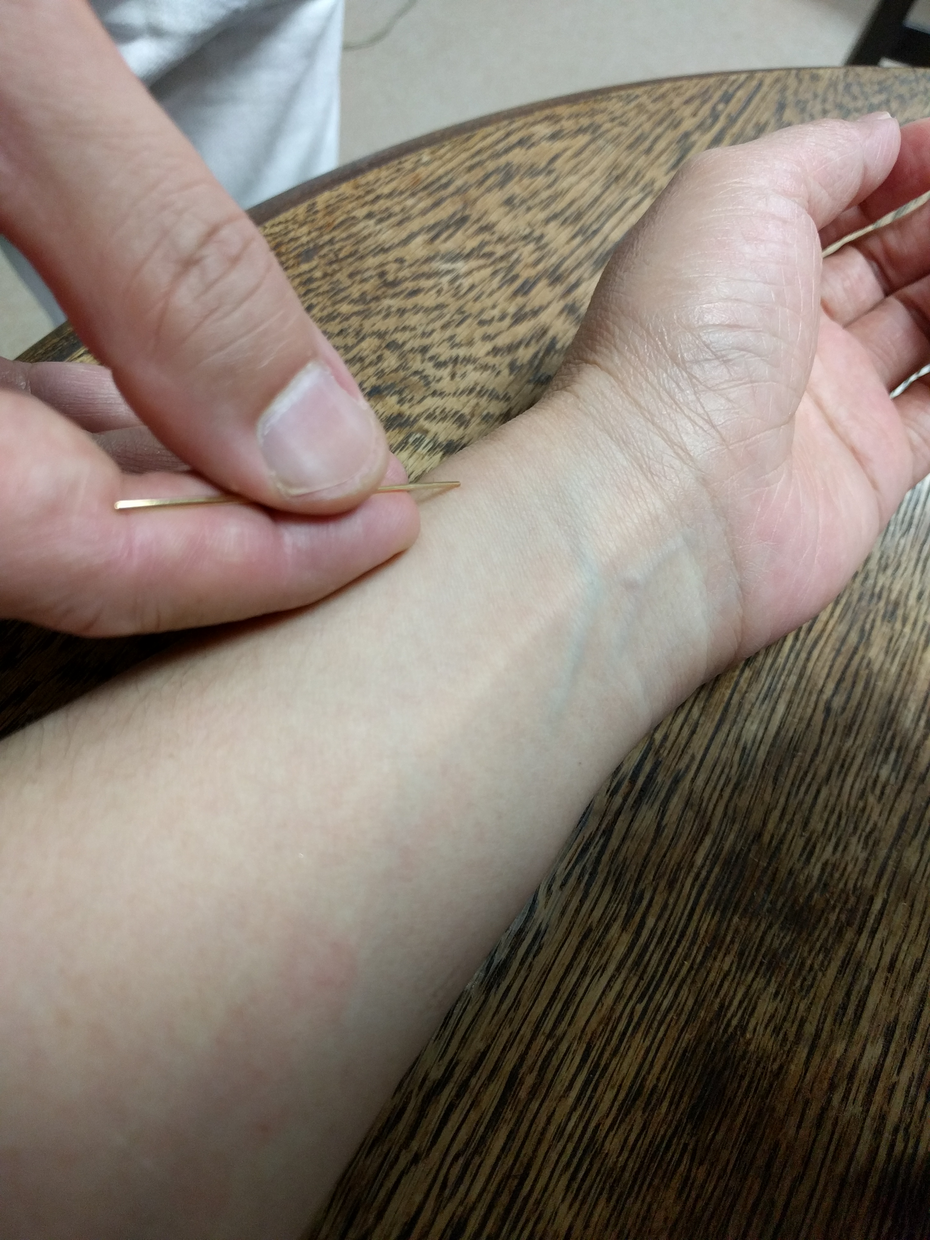ささない鍼で、腕のツボに効かせてます。